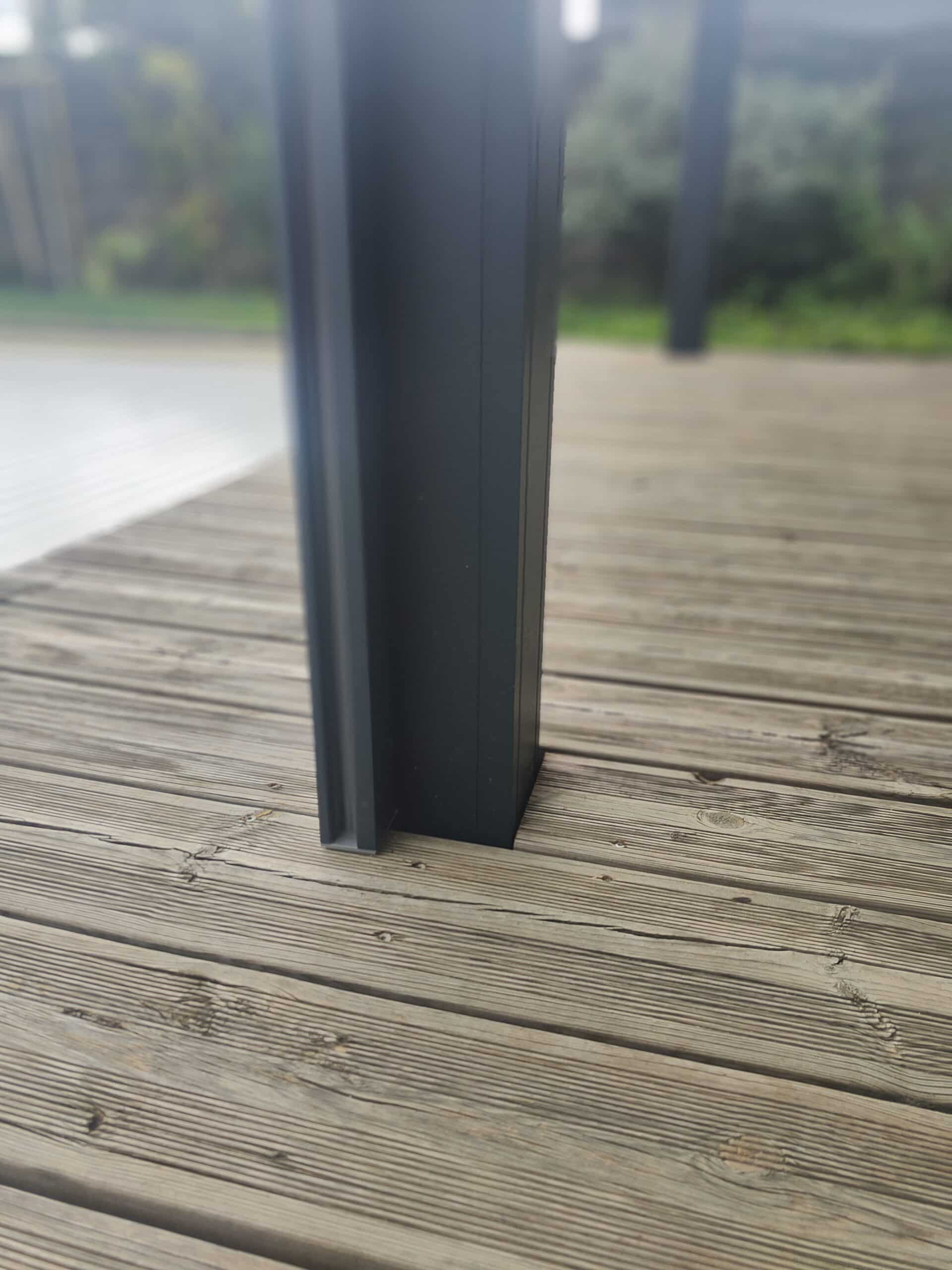 En effet, à partir de 7 mètres de long, la pergola doit être munie d’un troisième pied, pour assurer sa stabilité et une fixation solide.