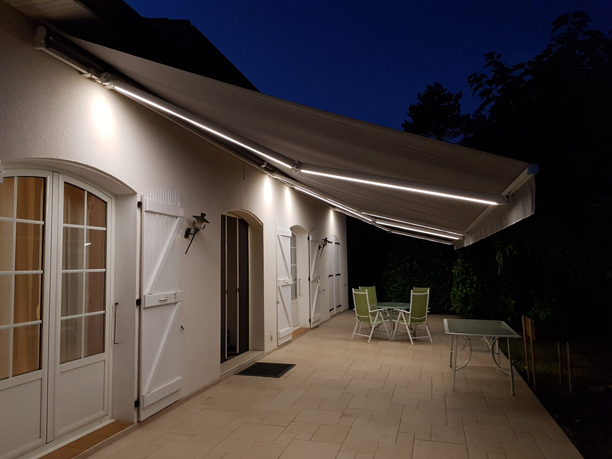Coloris de l’armature standard ou spécifique, choix de toiles techniques et durables, éclairage LED intégré (direct ou indirect), lambrequin fixe ou déroulable pour une protection solaire renforcée, capteurs vent, pluie ou soleil pour une gestion automatique en fonction de la météo … Et tout cela pilotable à distance, avec une télécommande ou depuis votre smartphone, grâce à la domotique Somfy.